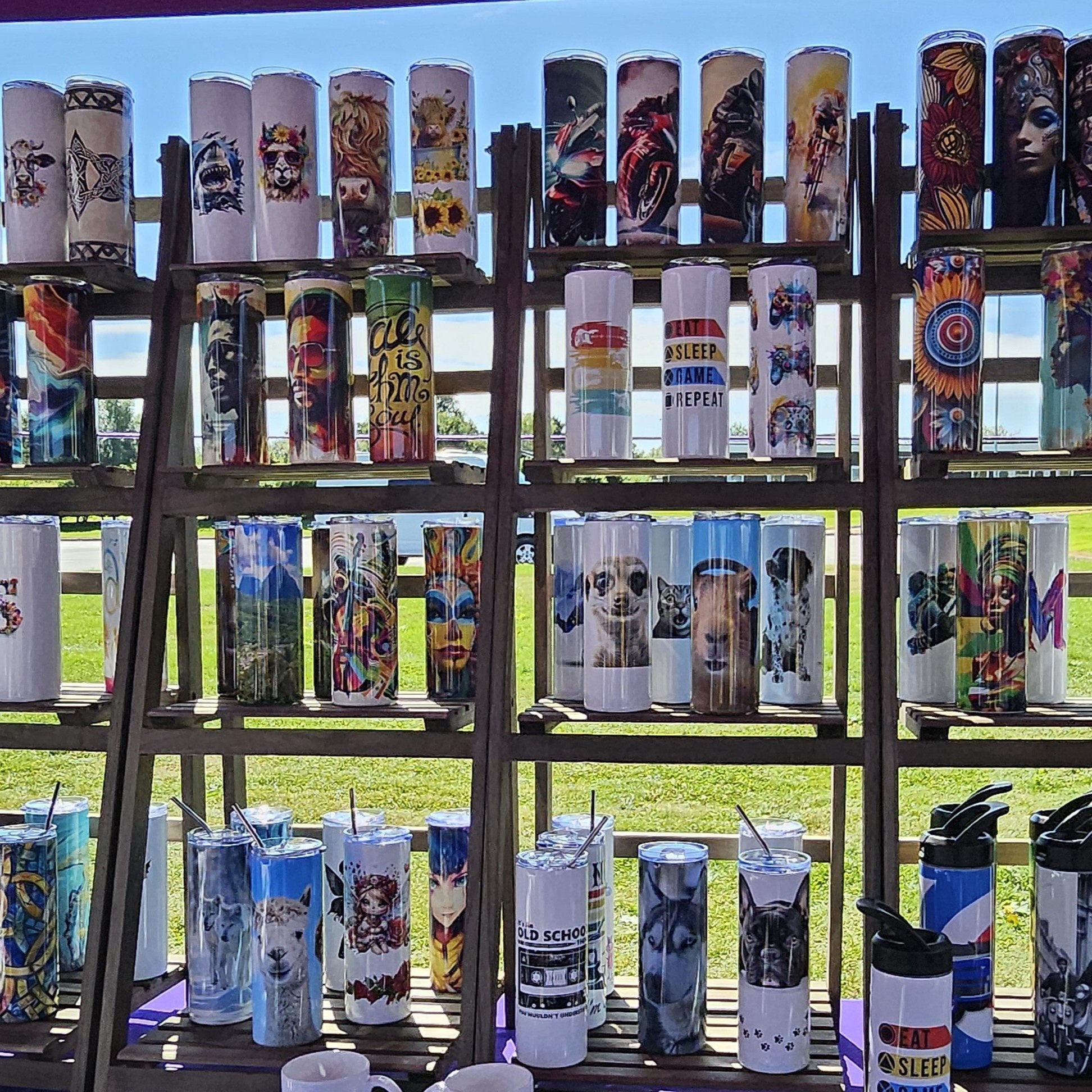 A slim bright white 20oz tumbler which can be printed with your own image. Can be printed with a duplicate image each side or a full wrap round image.