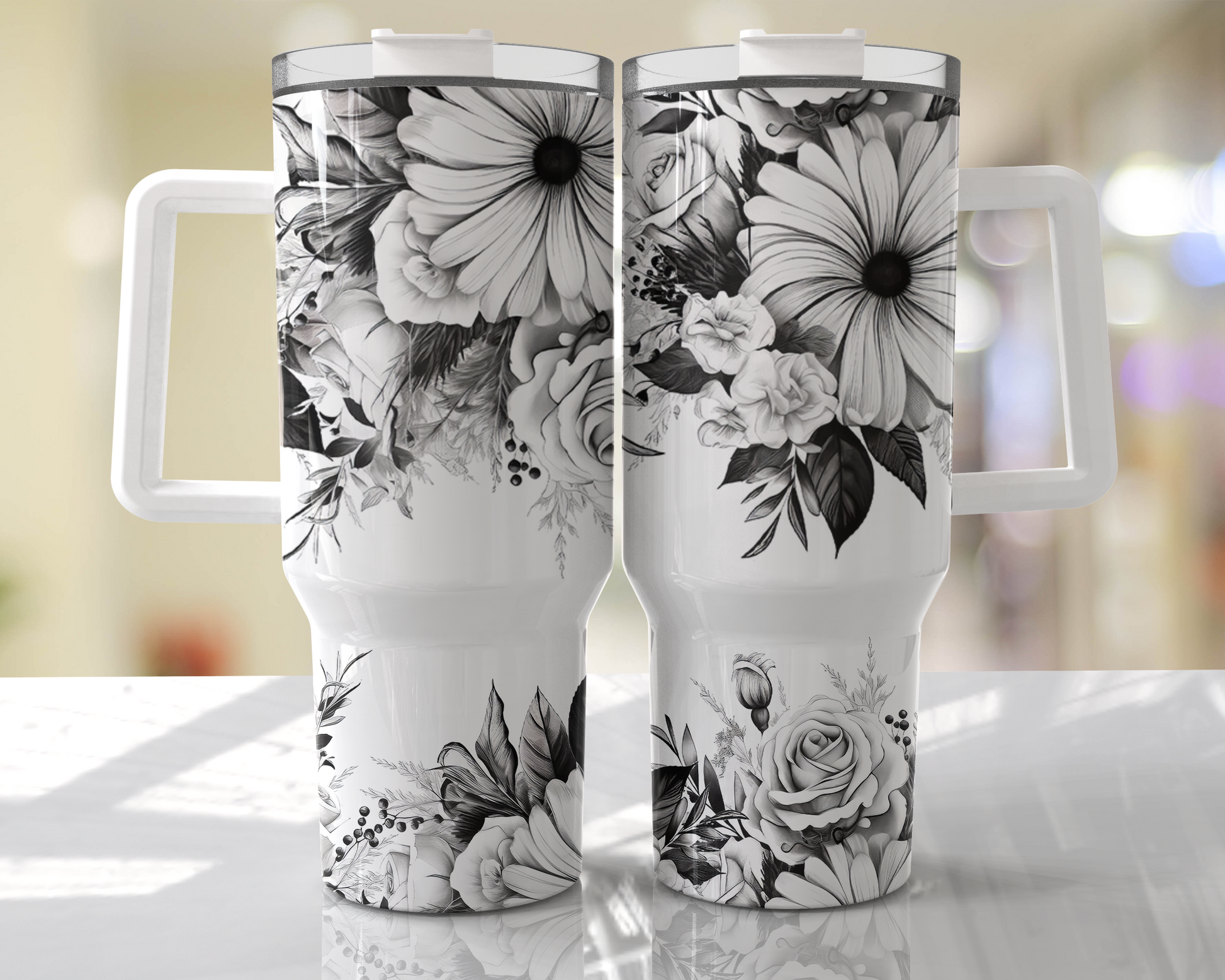 Insulated white stainless steel 40oz (1.2lt) tumbler, keeping your drinks hot or cold for hours.
