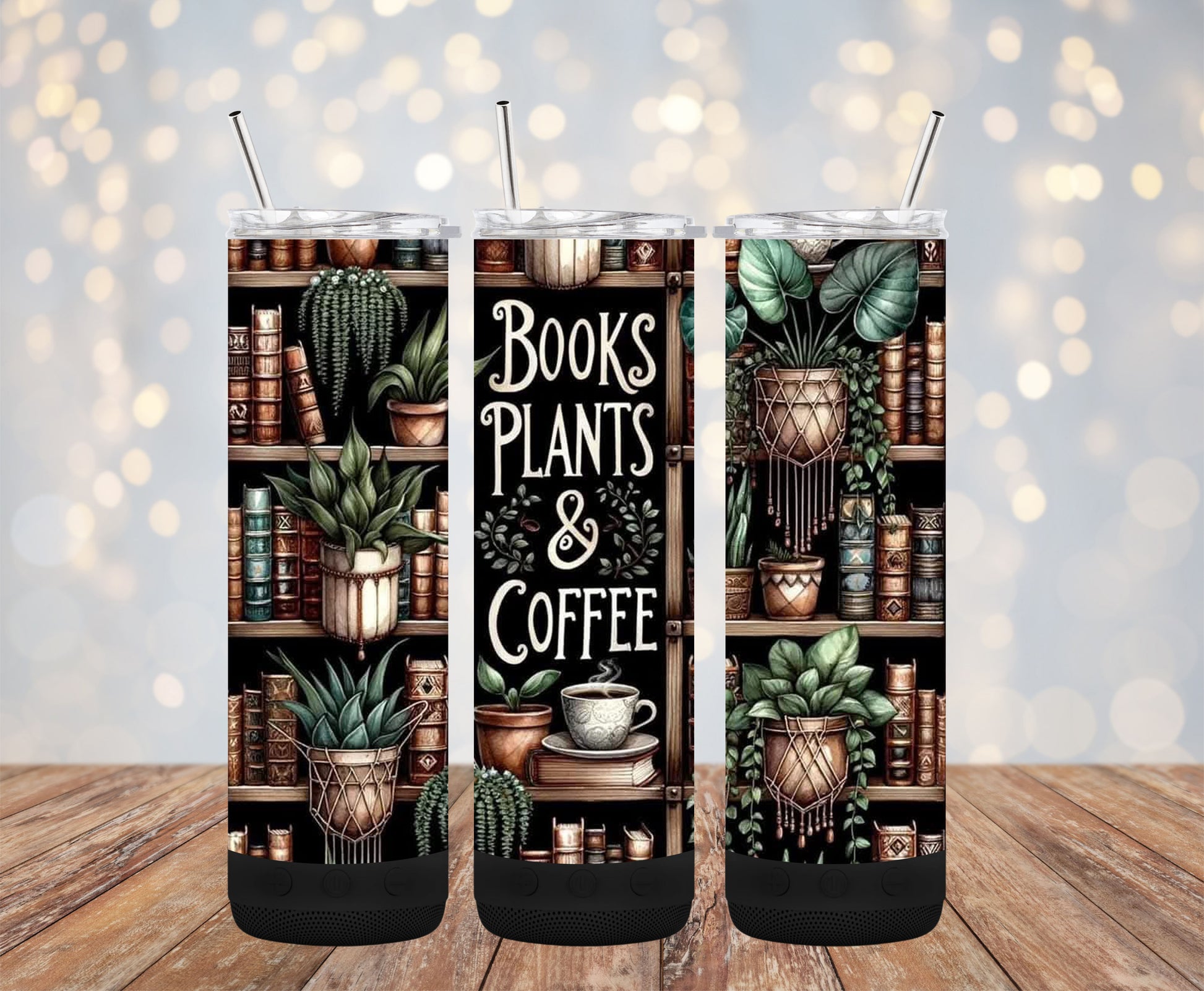 Books, Plants and Coffee 20oz Bluetooth Speaker Tumbler