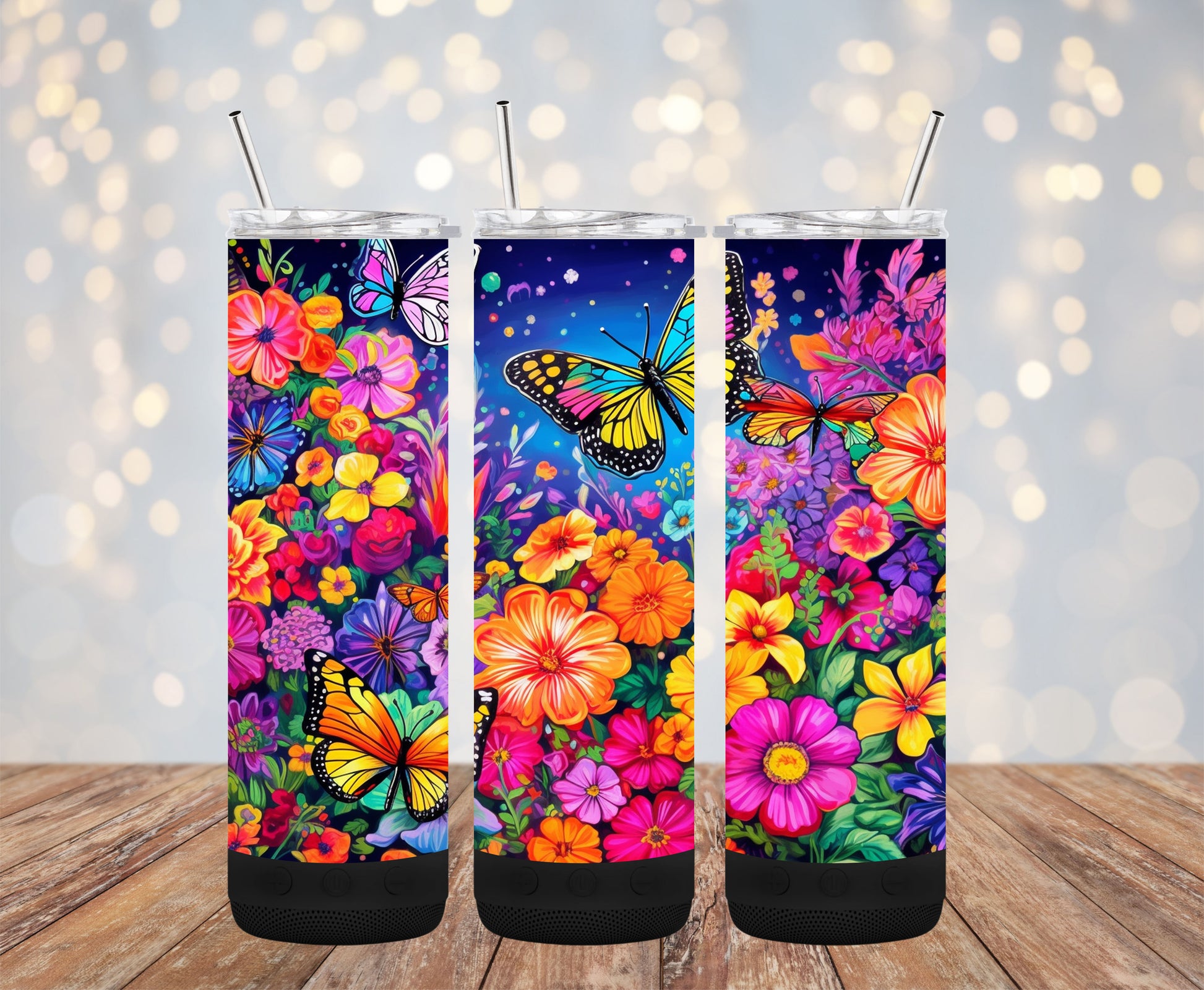 Bright Flowers and Butterflies 20oz Bluetooth Speaker Tumbler