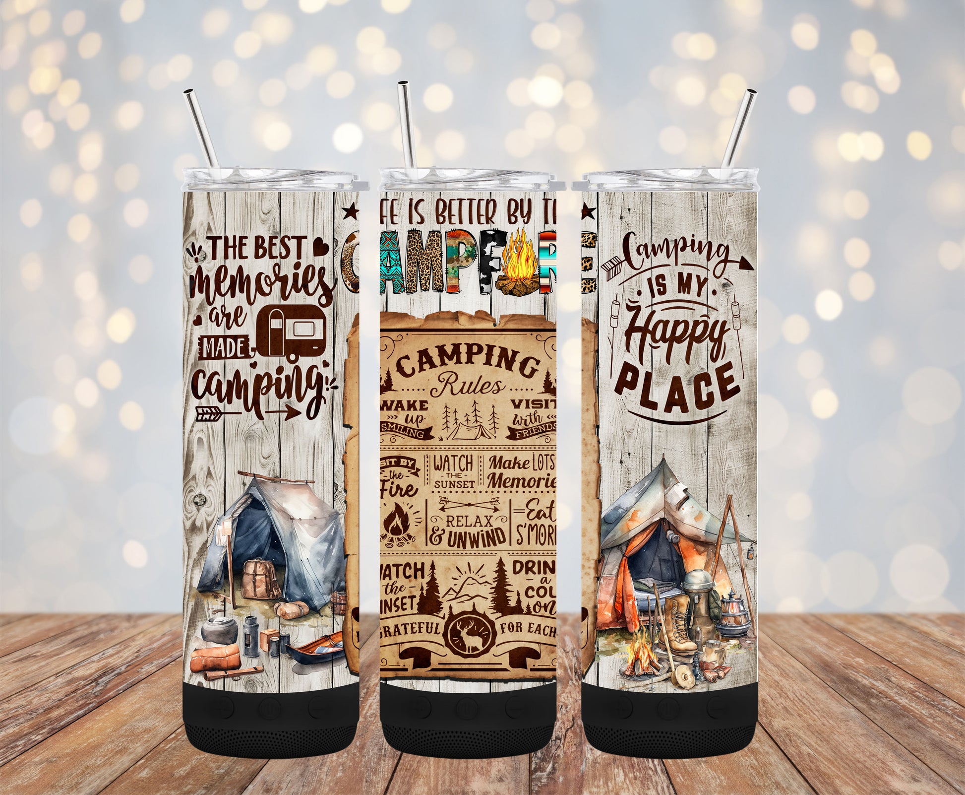 Complete with bluetooth speaker on the bottom. Speaker is removable for washing the tumbler. The tumbler comes with straw, clear plastic sealable lid and lead for charging the speaker.