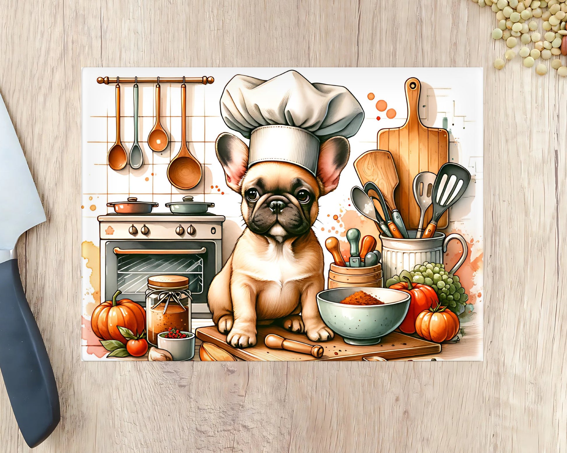 Frenchie Chef Chopping Cutting Board