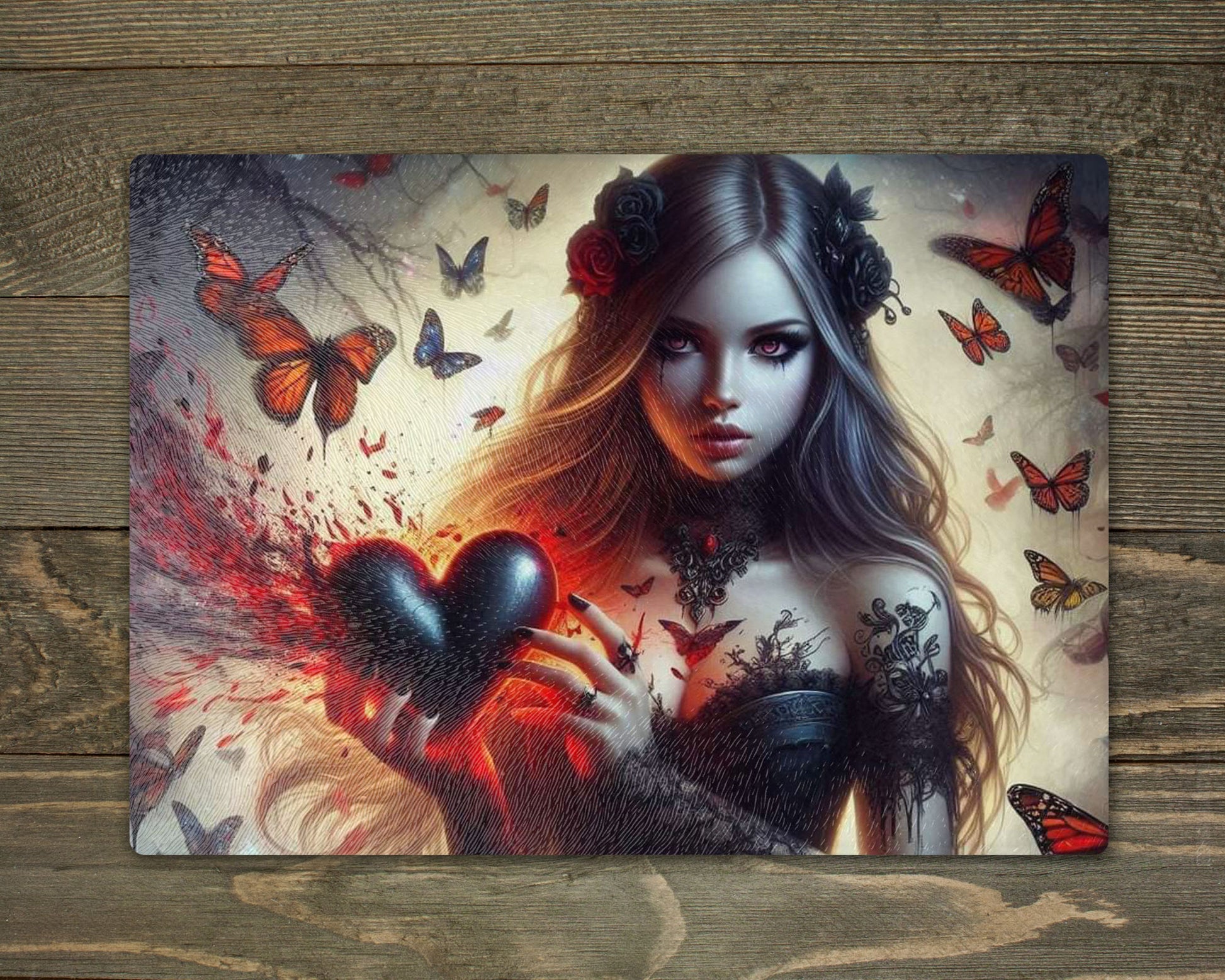 Tempered glass chopping board in either a chinchilla or smooth finish. High gloss vibrant print.