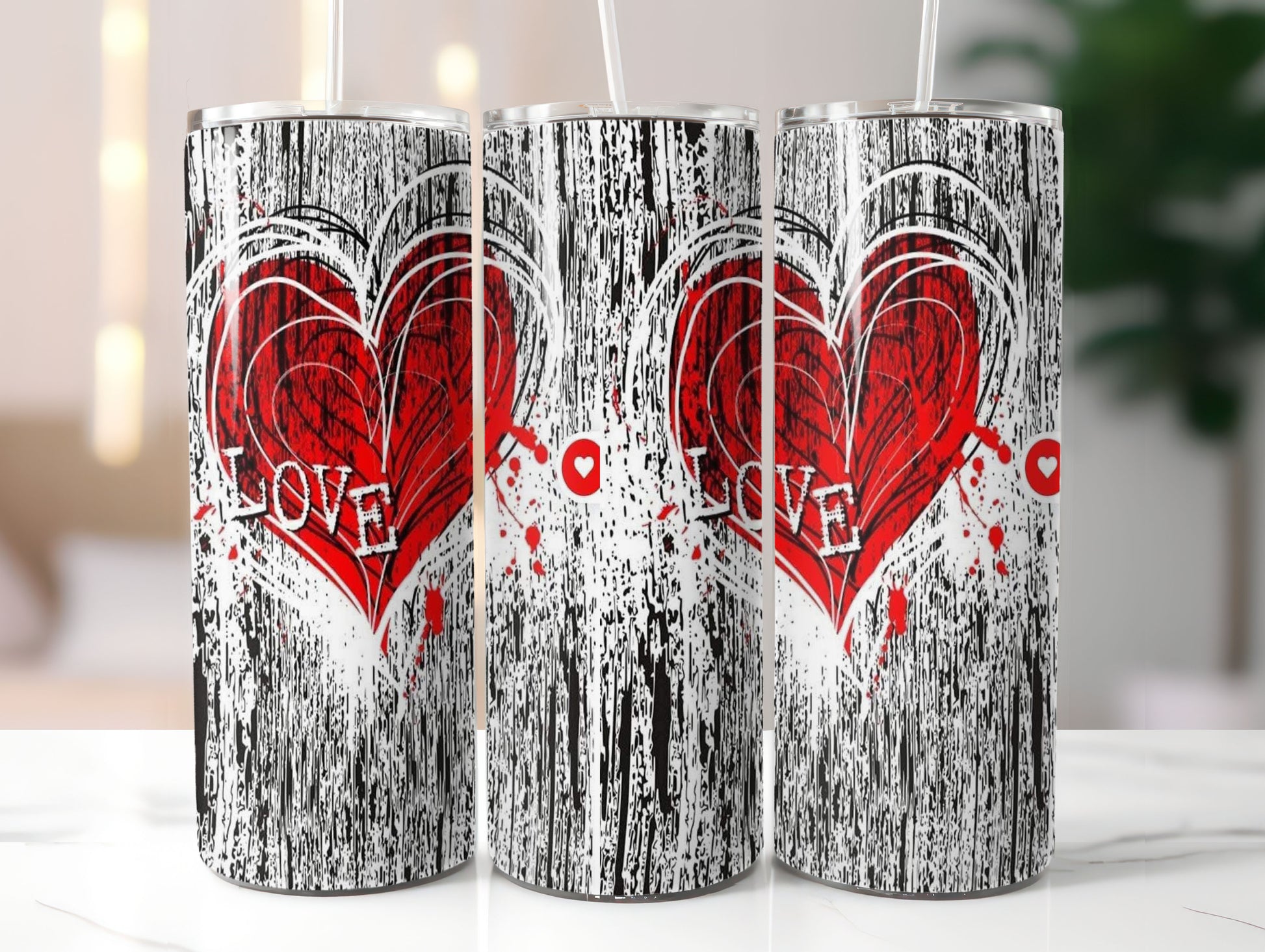 Love Heart Wood Effect Background Design 20oz Tumbler
