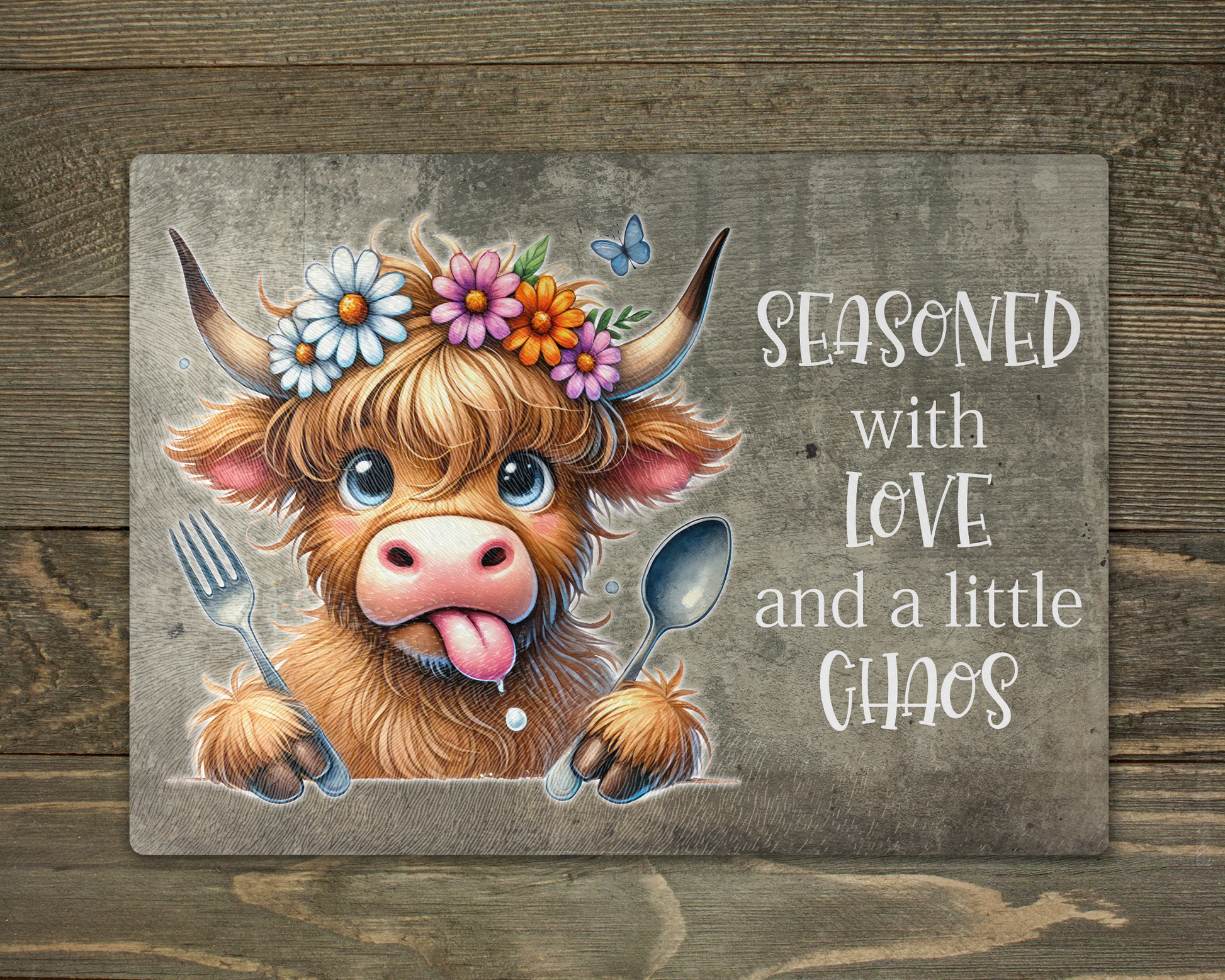 Highland Cow Seasoned with Love Chopping Cutting Board