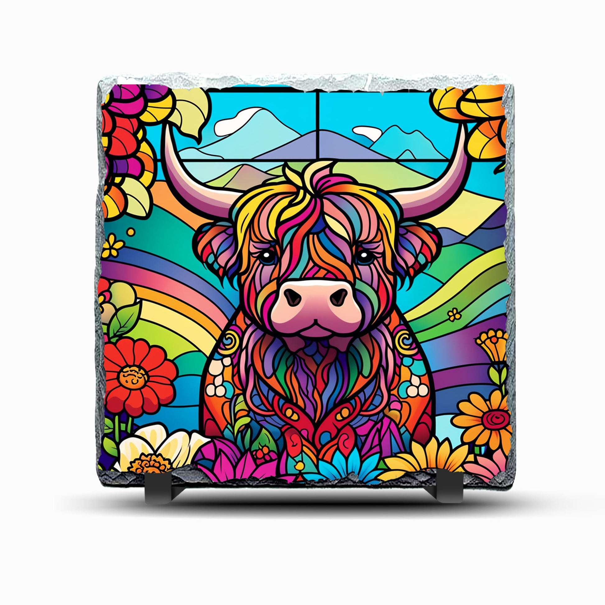 Highland Cow Stained Glass Design Printed Rock Slate