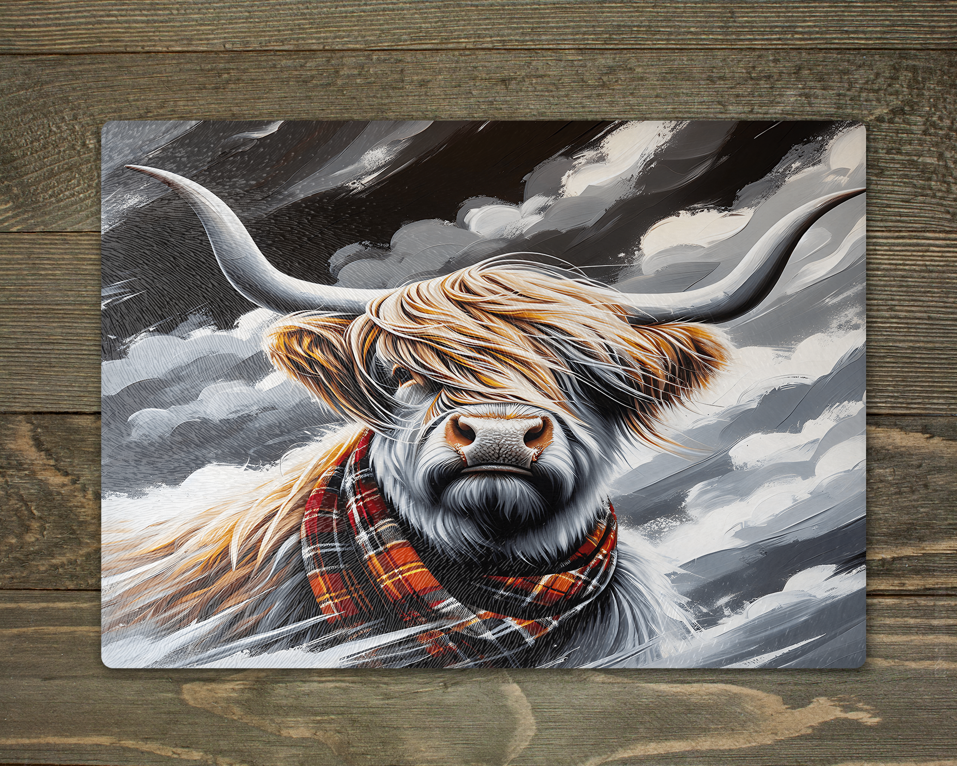Highland Cow Tartan Scarf Chopping Cutting Board
