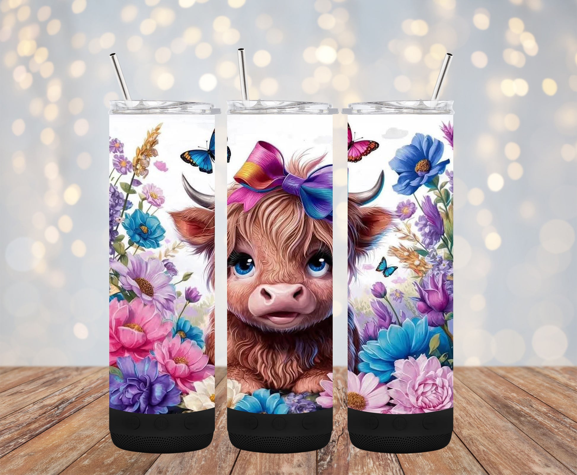 Highland Cow with Butterflies 20oz Bluetooth Speaker Tumbler