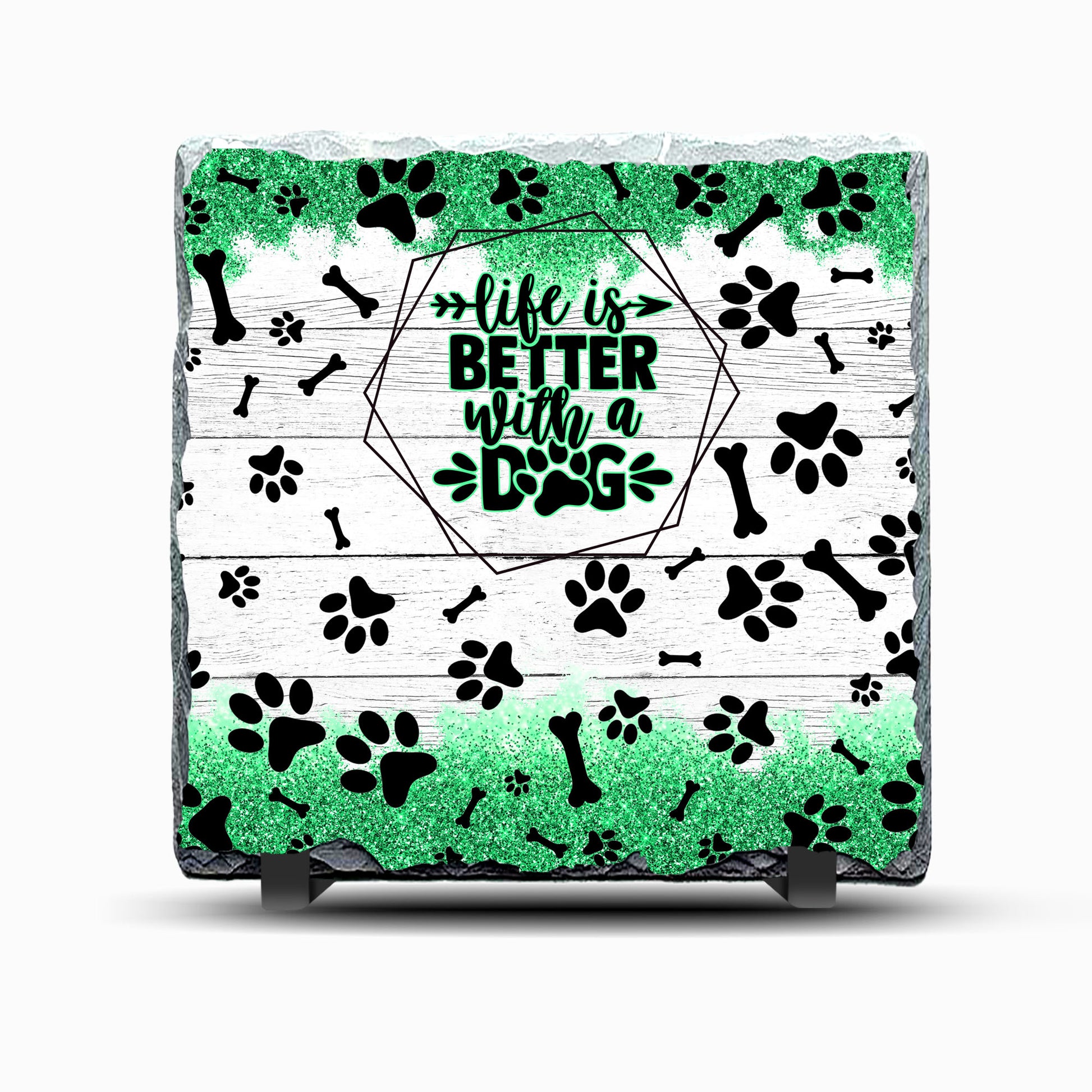 Life is Better with a Dog Green Design Printed Rock Slate