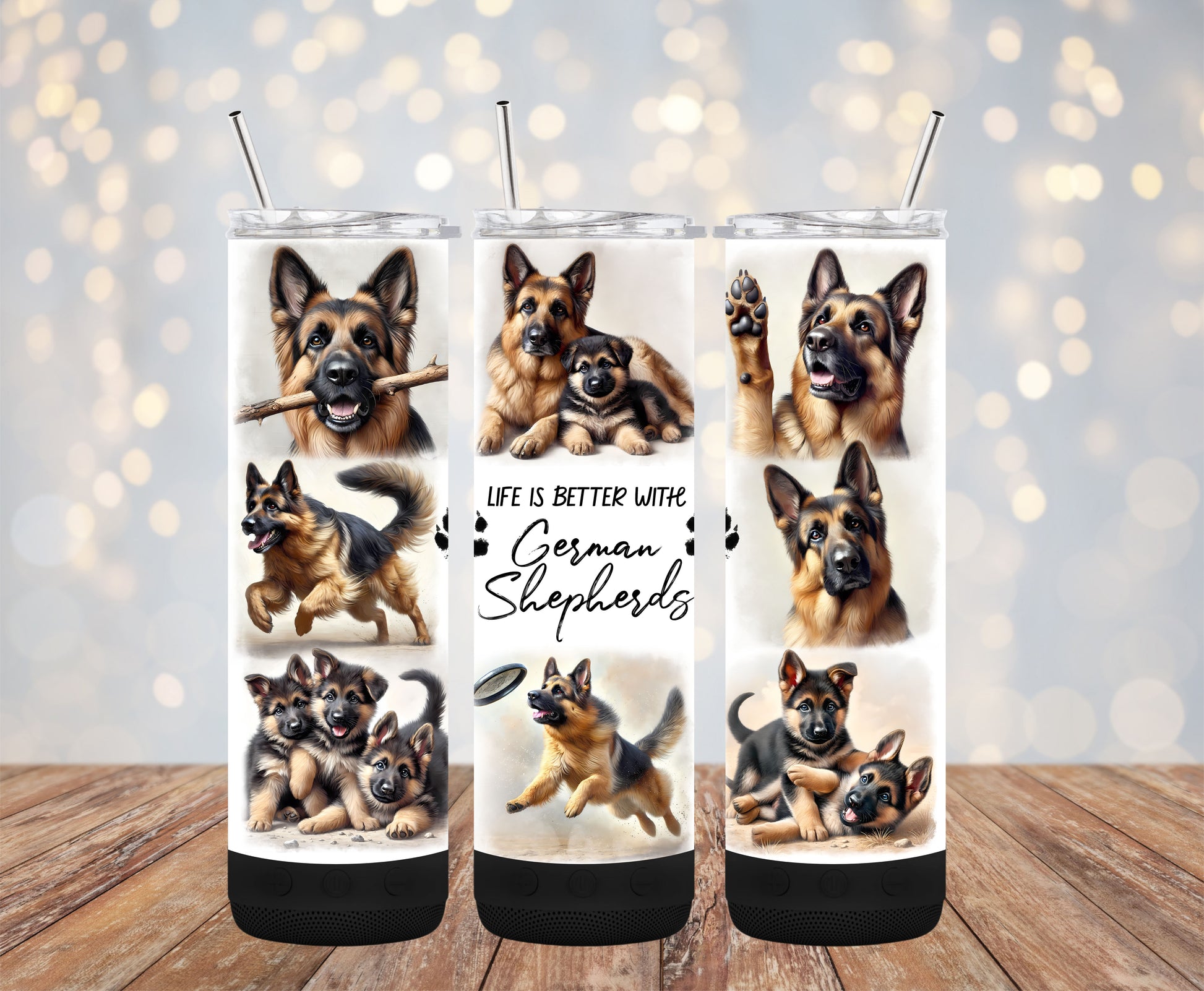 Life is Better with German Shepherds 20oz Bluetooth Speaker Tumbler