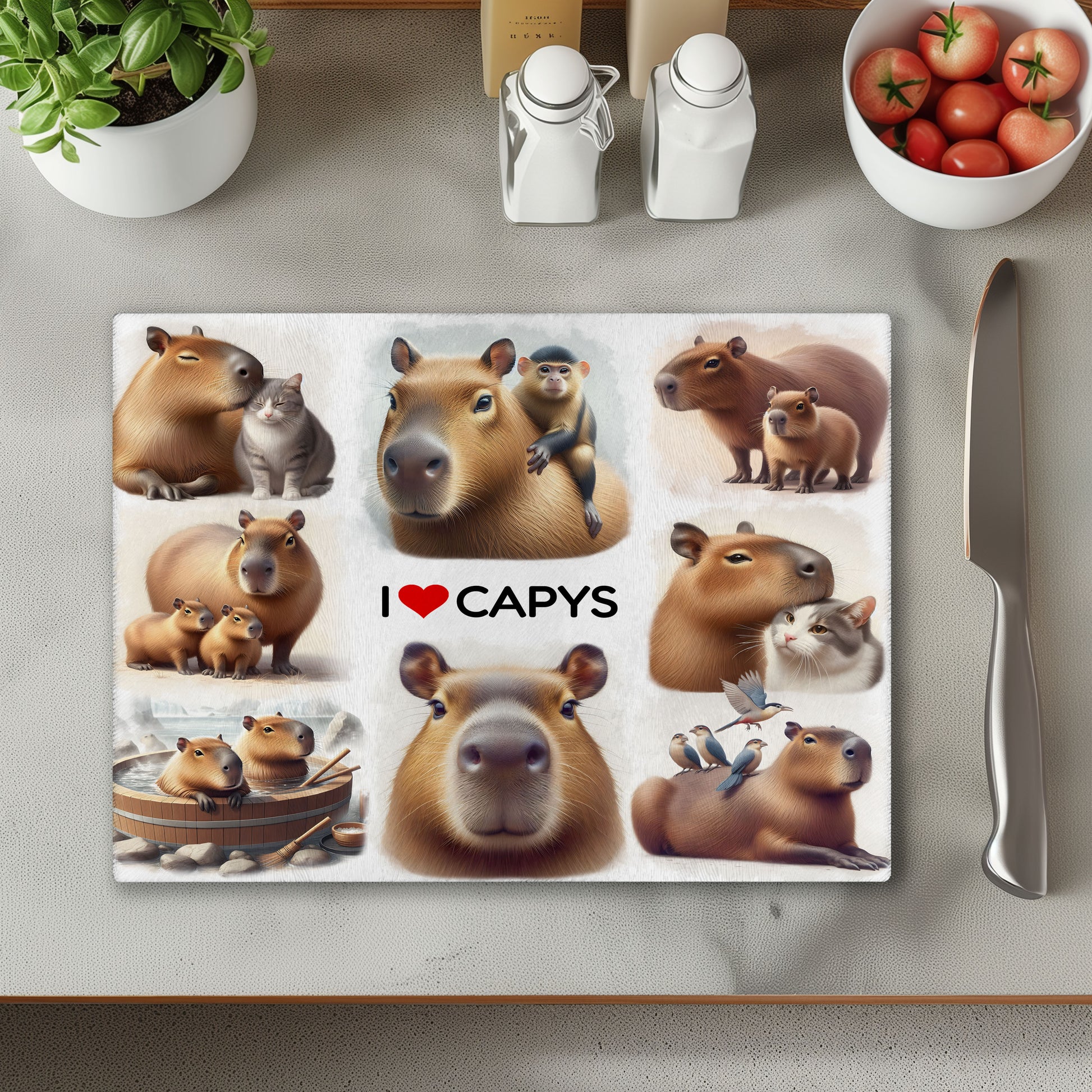 Tempered glass chopping board in either a chinchilla or smooth finish. High gloss vibrant print.