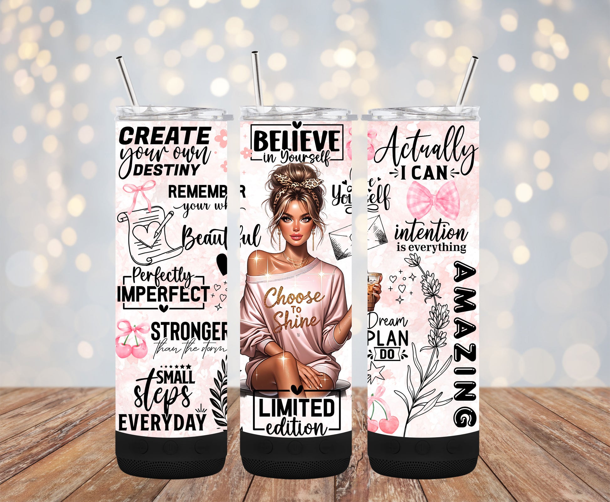 Pink Believe 20oz Bluetooth Speaker Tumbler