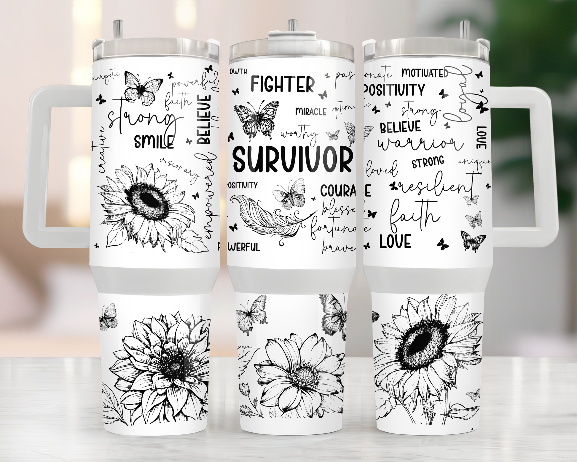 Insulated white stainless steel 40oz (1.2lt) tumbler, keeping your drinks hot or cold for hours.