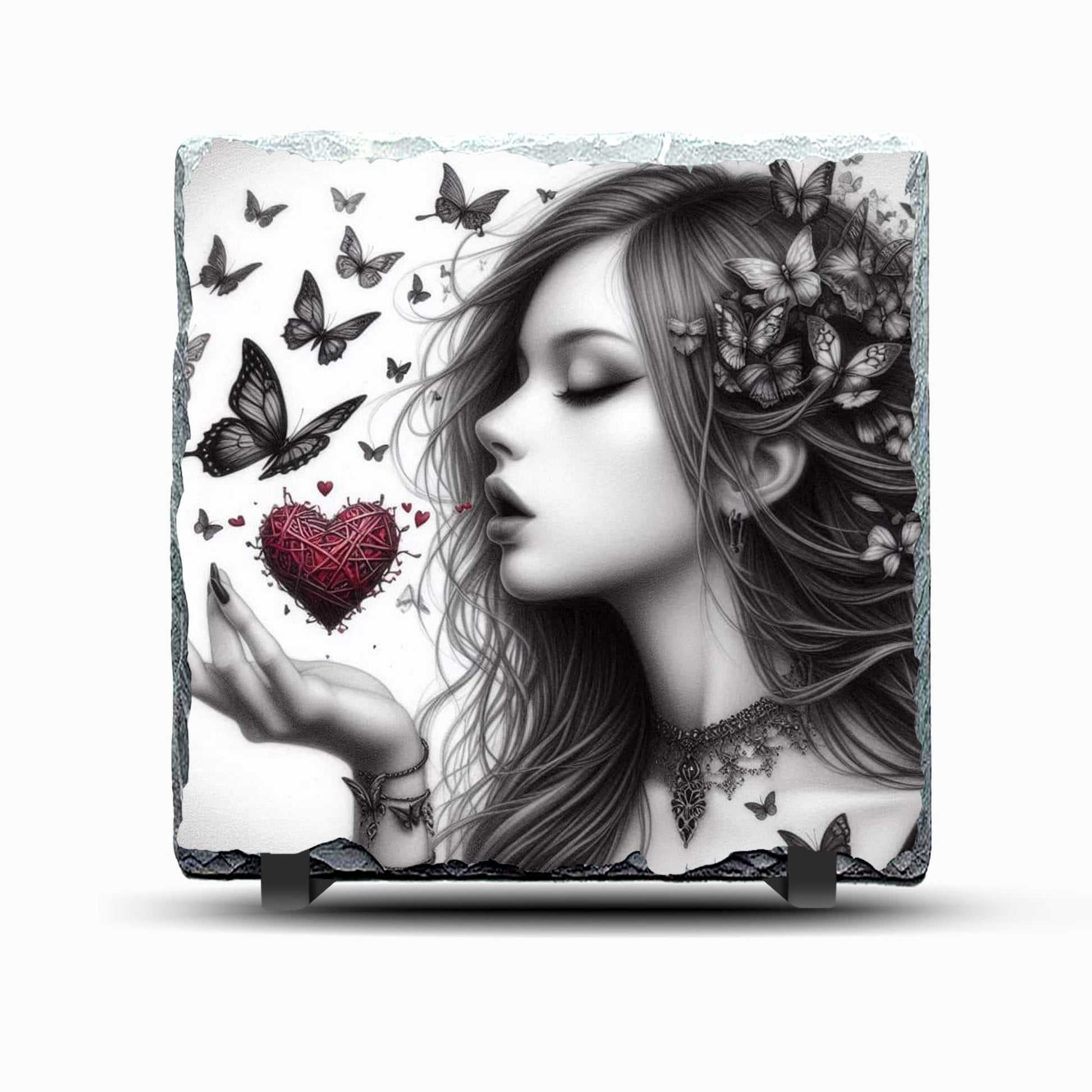 Woman with Hearts and Butterflies Design 2 Printed Rock Slate